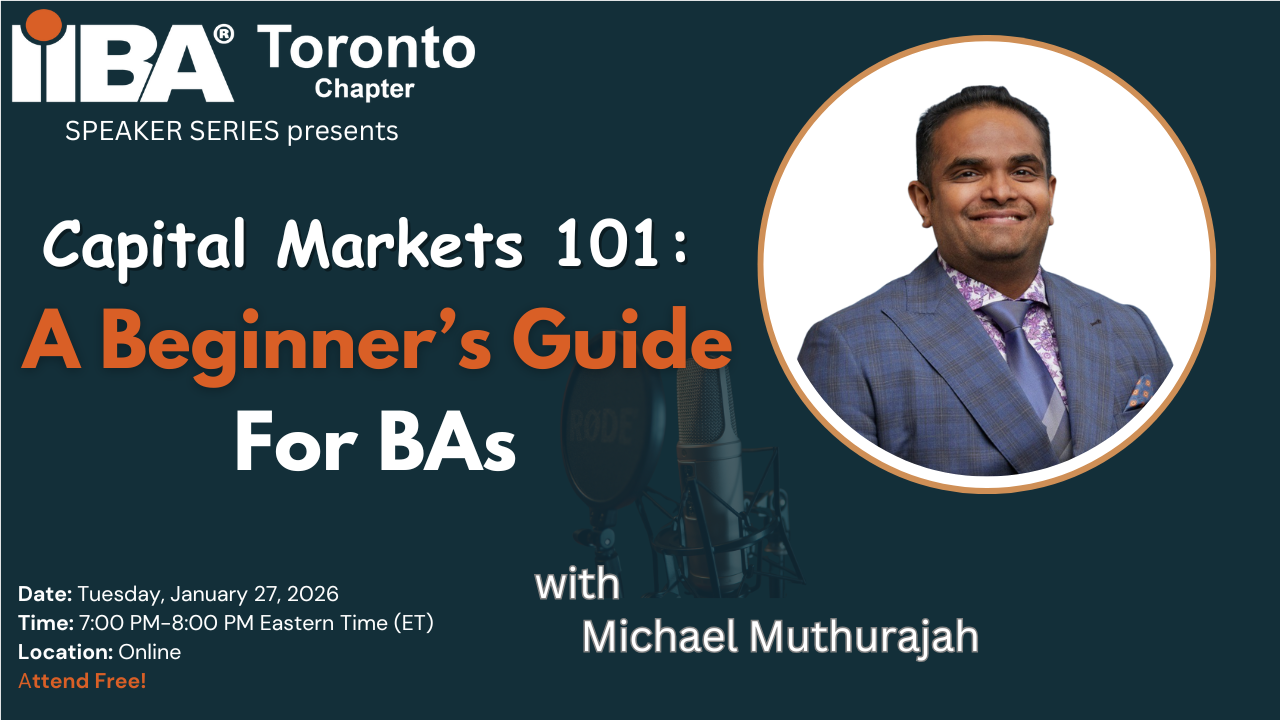 CBAP,CCBA,ECBA,IIBA,IIBA Toronto,Michael Muthurajah,business analysis,business analyst,capital markets |