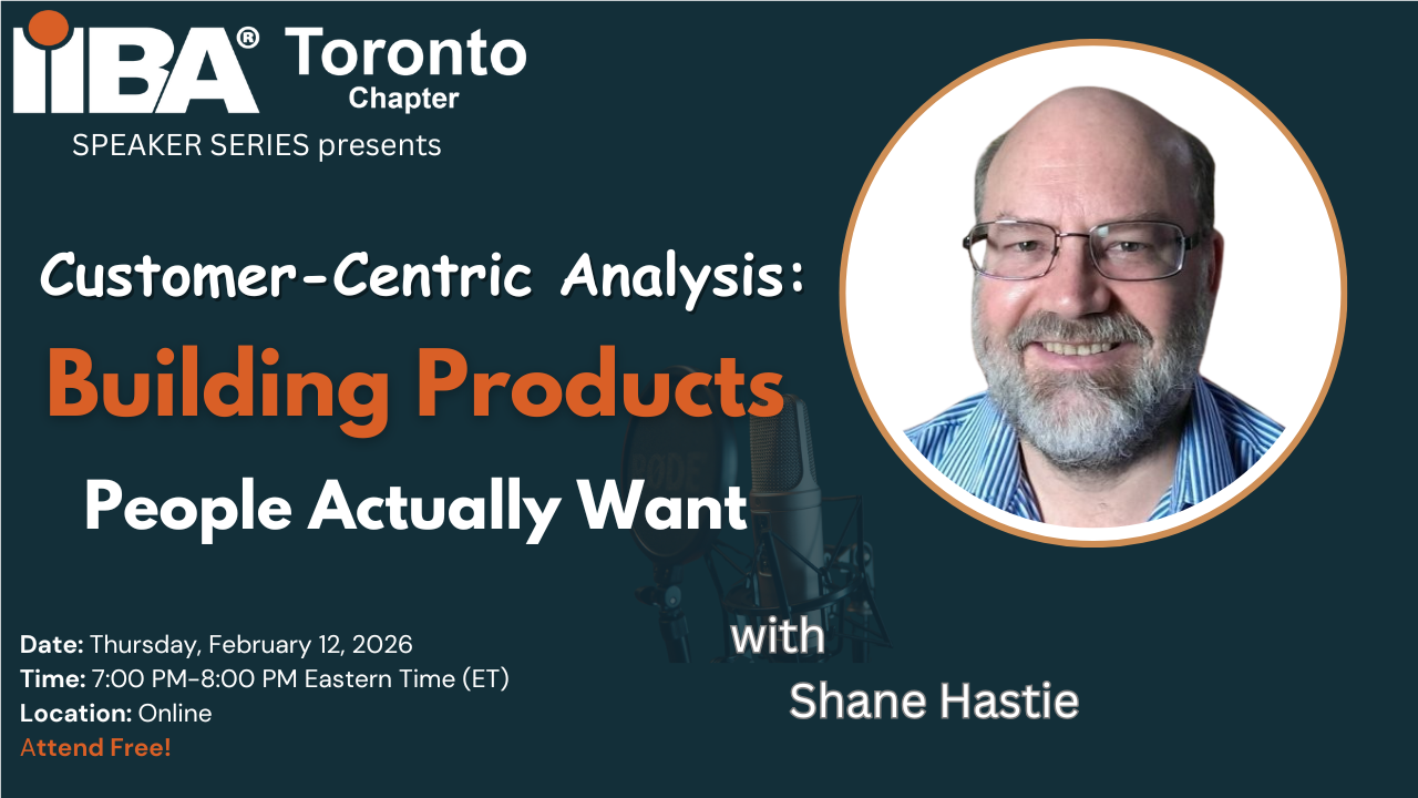 CBAP,CCBA,ECBA,IIBA,IIBA Toronto,Shane Hastie,business analysis,business analyst,product analysis |