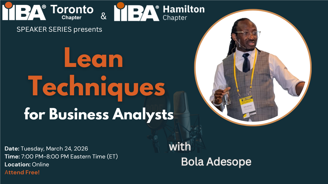 Bola Adesope,CBAP,CCBA,ECBA,IIBA,IIBA Toronto,business analysis,business analyst,lean techniques |